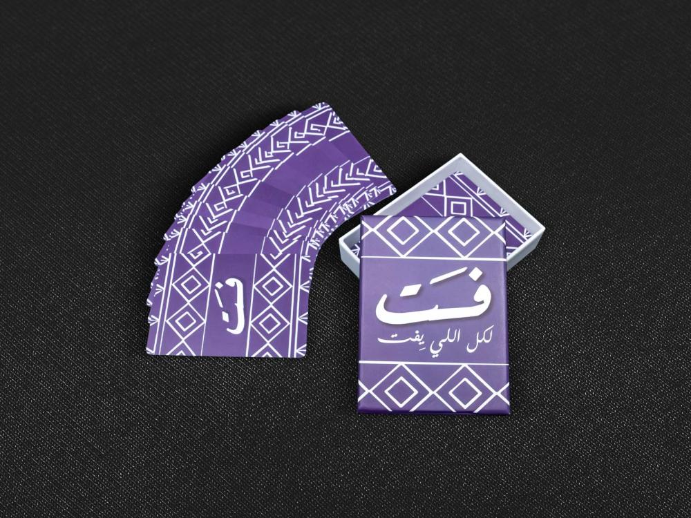 محتوى العلبة ورق بجودة عالية بتصميم فريد يحمل اللون البنفسجي المقتبس من الخزامى وتتداخل معها زخرفة السدو .